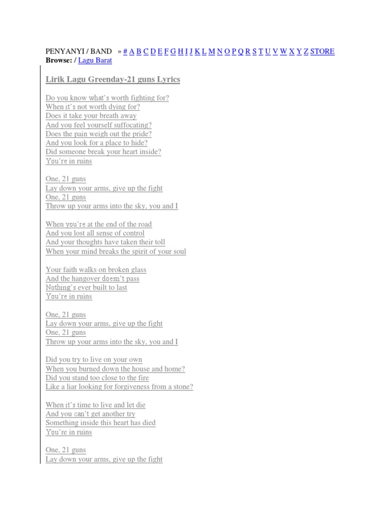 21 Guns Lyrics - Do you know what's worth fighting for, when it's not worth dying for? 21 Guns Lyrics / whatsername do you know what's worth fighting for?