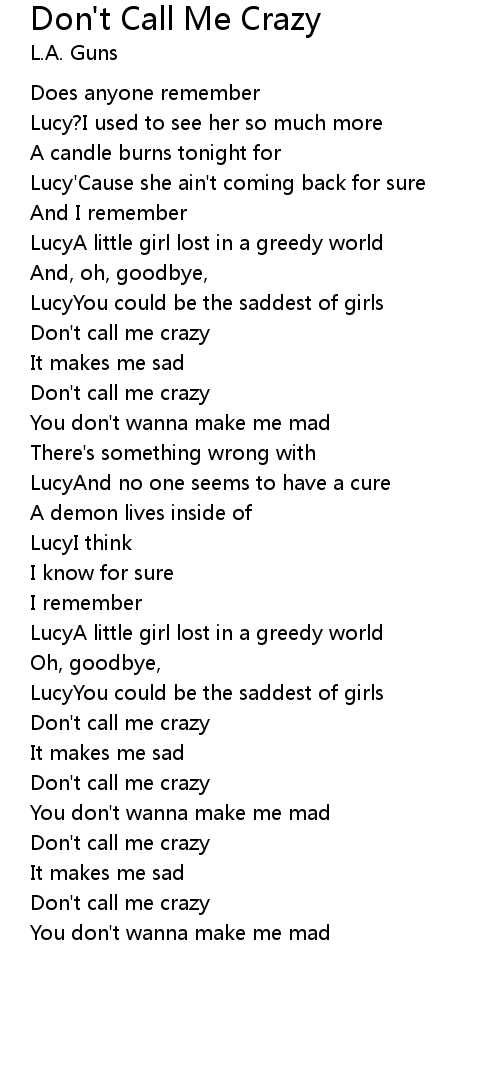 Don T Call Me Crazy Lyrics By L A Guns Does Anyone Remember Lucy - You say i'm lost in a fantasy but what we had was real to me call me crazy.