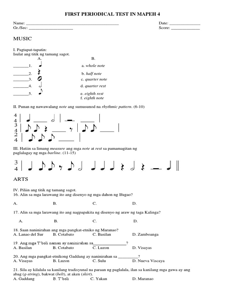 First Periodical Test In Mapeh 4 - Maraming uri ng deskriptibong pananaliksik, ngunit napili ng mananaliksik na gamitin ang descriptive survey research design, na gumagamit ng talatanungan (survey questionnaire) para.