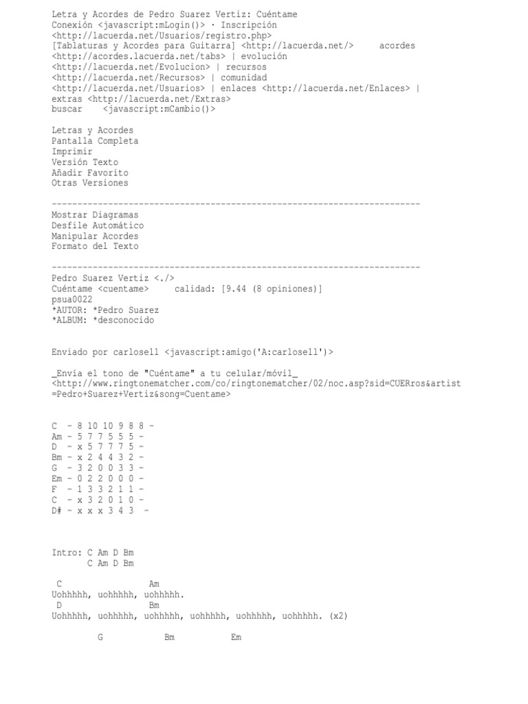 Pedro Suarez Vertiz Cuentame Letra Y Acordes - Letras y acordes de guitarra, piano y ukulele.