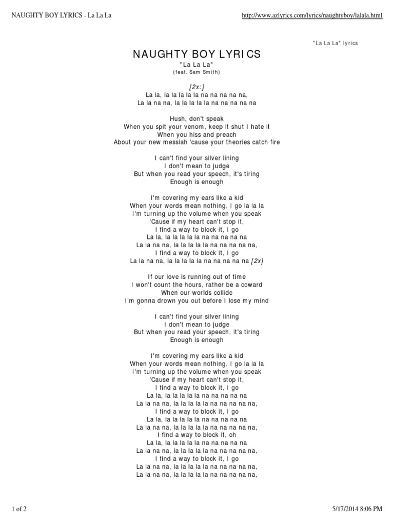 Naughty Boy Lalala Lyrics - You don't have to listen to everything you're told. Naughty Boy Lalala Lyrics / From the album hotel cabana · copyright: