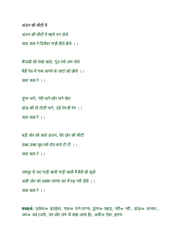 Rajasthani Lok Geet Lyrics In Hindi / Desh bhakti geet in hindi. Rajasthani Lok Geet Lyrics In Hindi / Click to watch rajasthani folk song rumaal.