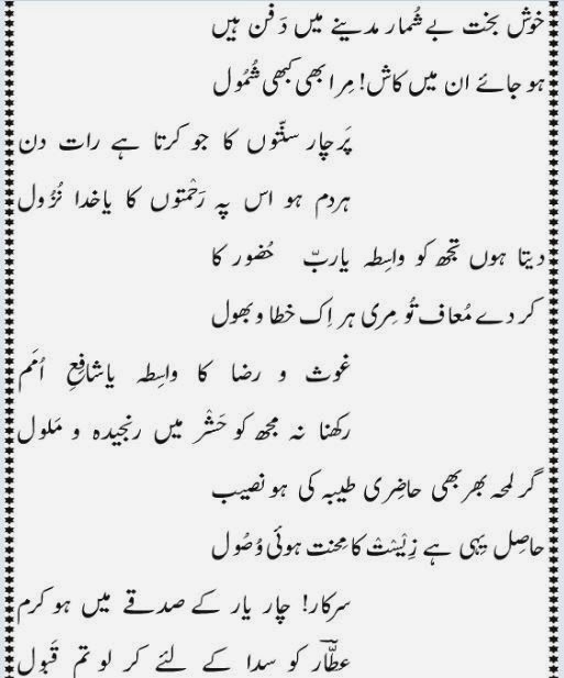 Ahle Sunnat Wal Jamaat Karun Har Aan Mai Teri Ita At Ya Rasool Allah - Halima kar qadi vekhay, kadi sarkaar (saw) nu wakhay, main keri sayj tere lai sajawan, ya mera dil vi aie chahnda aey, tusi merey we ghar aao, par mein kerey maan thi tainu bulaanwaan, ya rasoolallah.